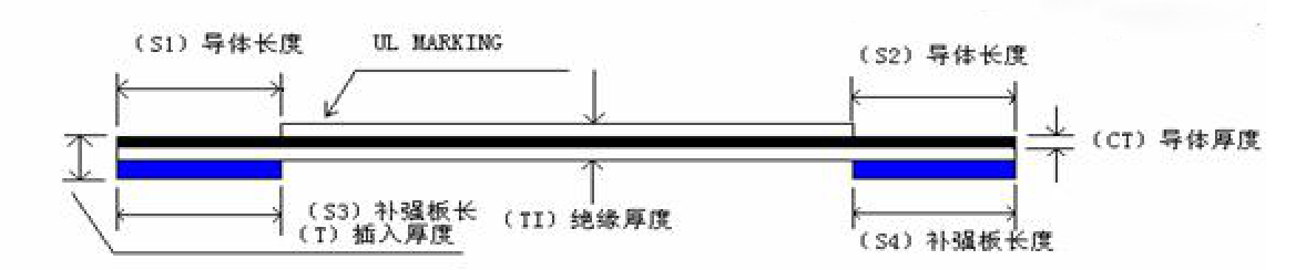 那么插接端CT的厚度呢,插接端厚度也是由三部分組成,銅線厚度,下層膠膜厚度,補(bǔ)強(qiáng)板厚度(如上面第一圖藍(lán)色部分)這個(gè)插接端常規(guī)厚度是0.3mm,如常規(guī)銅線厚度0.035mm,常規(guī)膠膜厚度0.043mm,常規(guī)補(bǔ)強(qiáng)板厚度0.225mm,加起來就是0.3mm厚度。這個(gè)也是FFC軟排線的標(biāo)準(zhǔn)插接端厚度,因?yàn)镕PC連接器的插槽的縫隙也是0.3mm,所以這樣,排線端部插入連接器就是一個(gè)標(biāo)準(zhǔn)的配合,不松不緊。